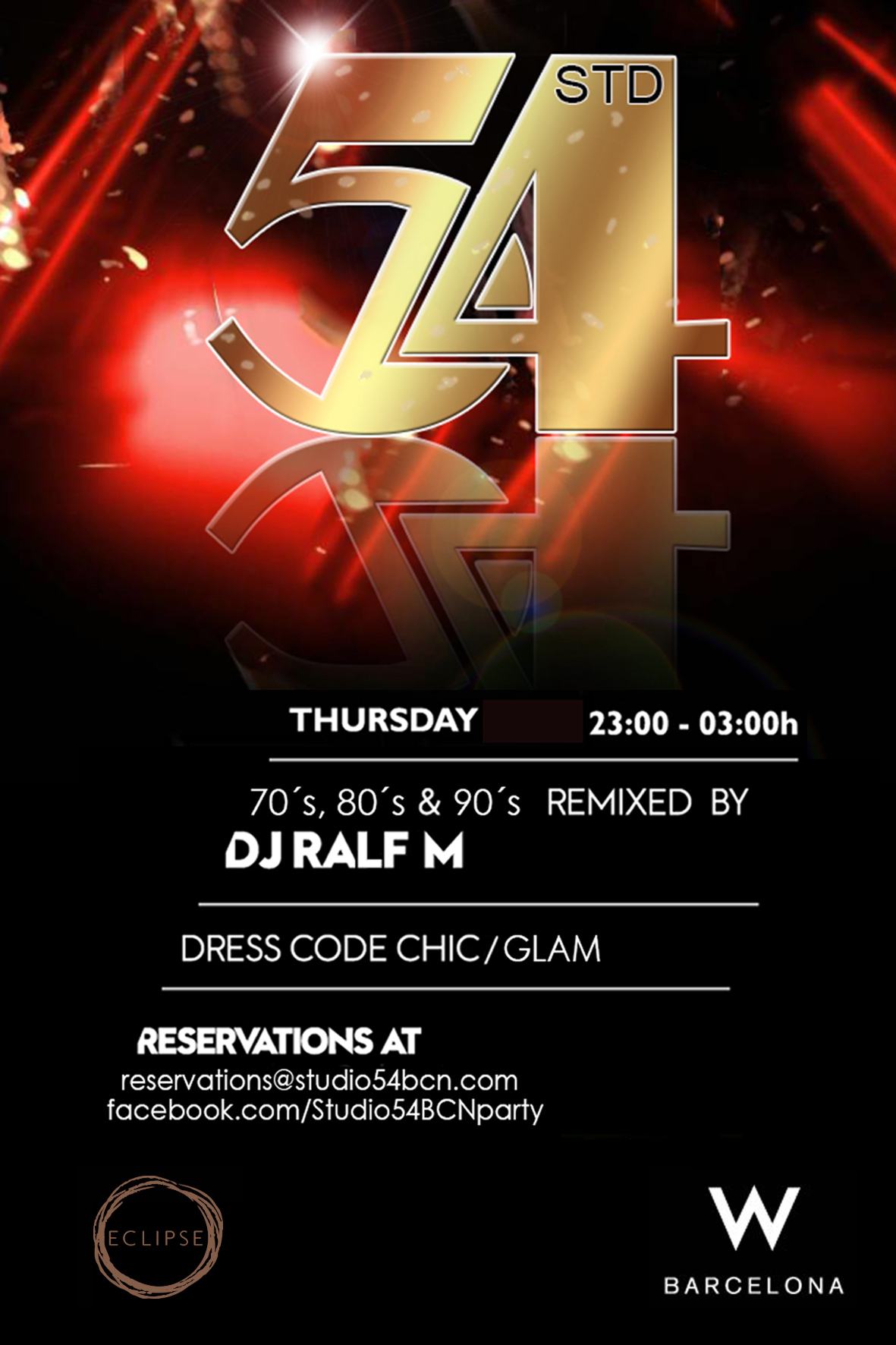 Ralf is the promotor and resident DJ every thursday at Studio 54 Party at Eclipse Sky Bar (26th floor W Hotel Barcelona).